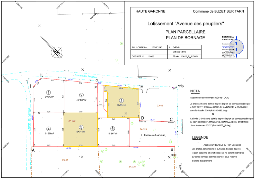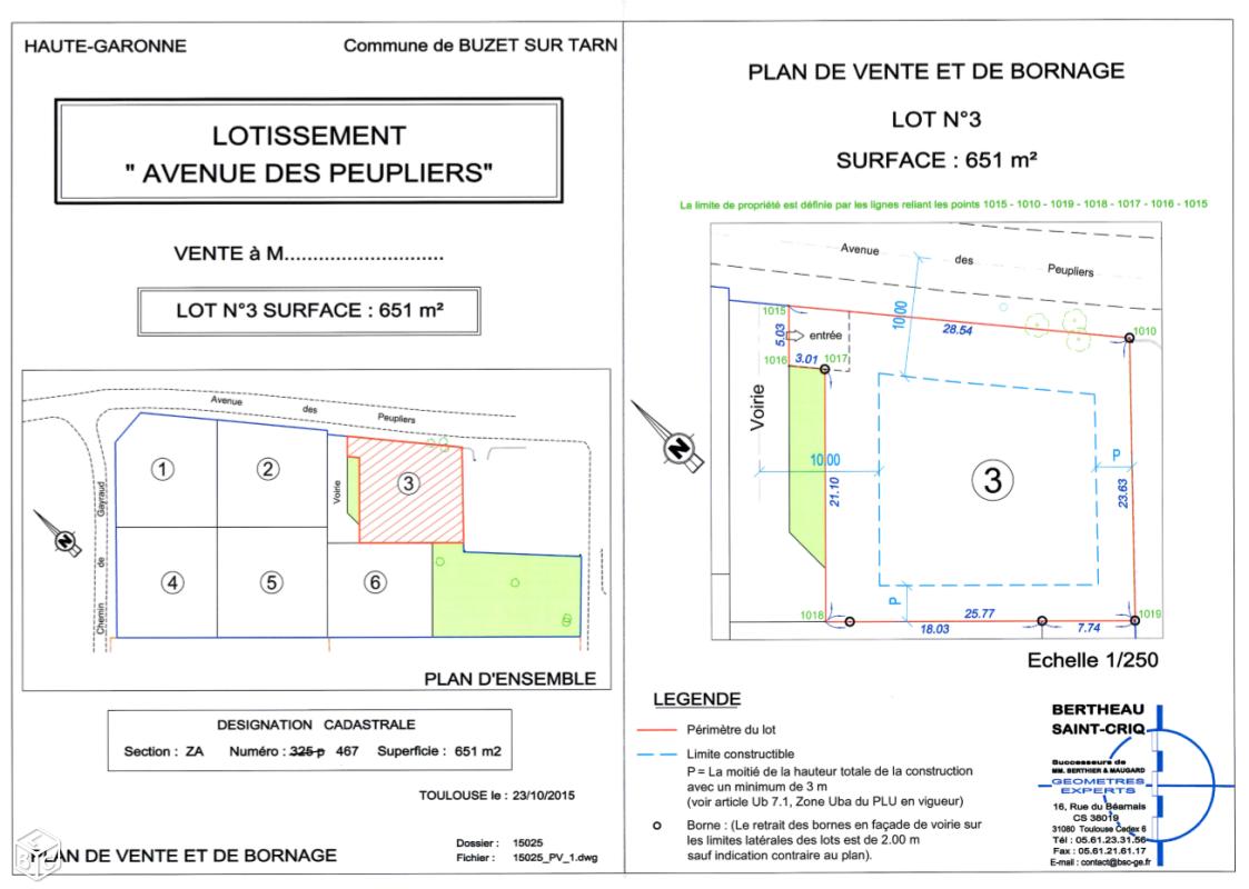 Surface totale de la parcelle : Voir plan de bornage du lotissement ci-dessus